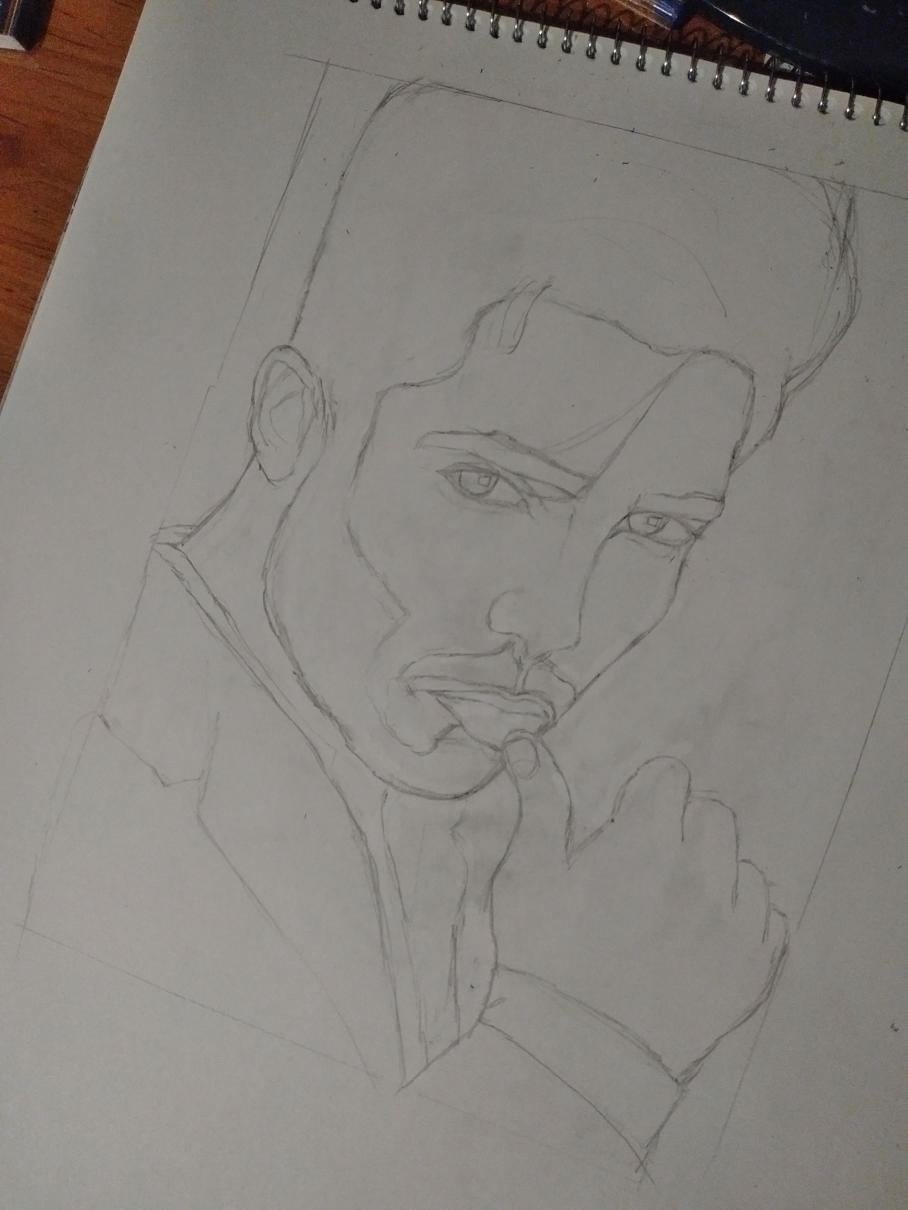 در حال نقاشی چهرۀ مرد تا شب تمومش می کنم امیدوارم طبیعی بشه این مراحل اولیه اش هست حالا رنگ آمیزی و سایه روشن بشه خیلی روح میگیره...![]()