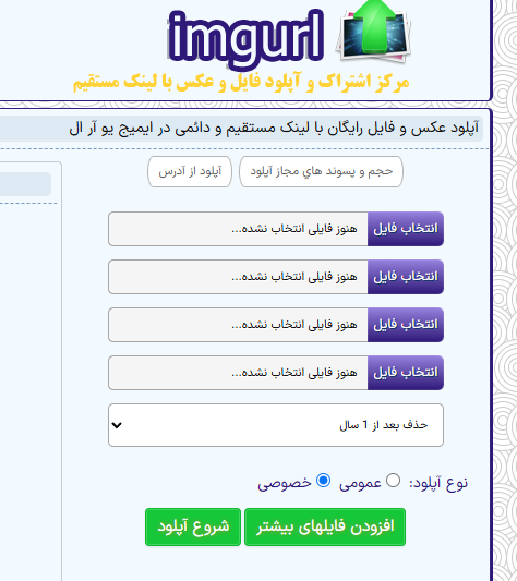حالا عکس مورد نظر باید در جایی آپلود کنید مثل سایت https://imgurl.ir/