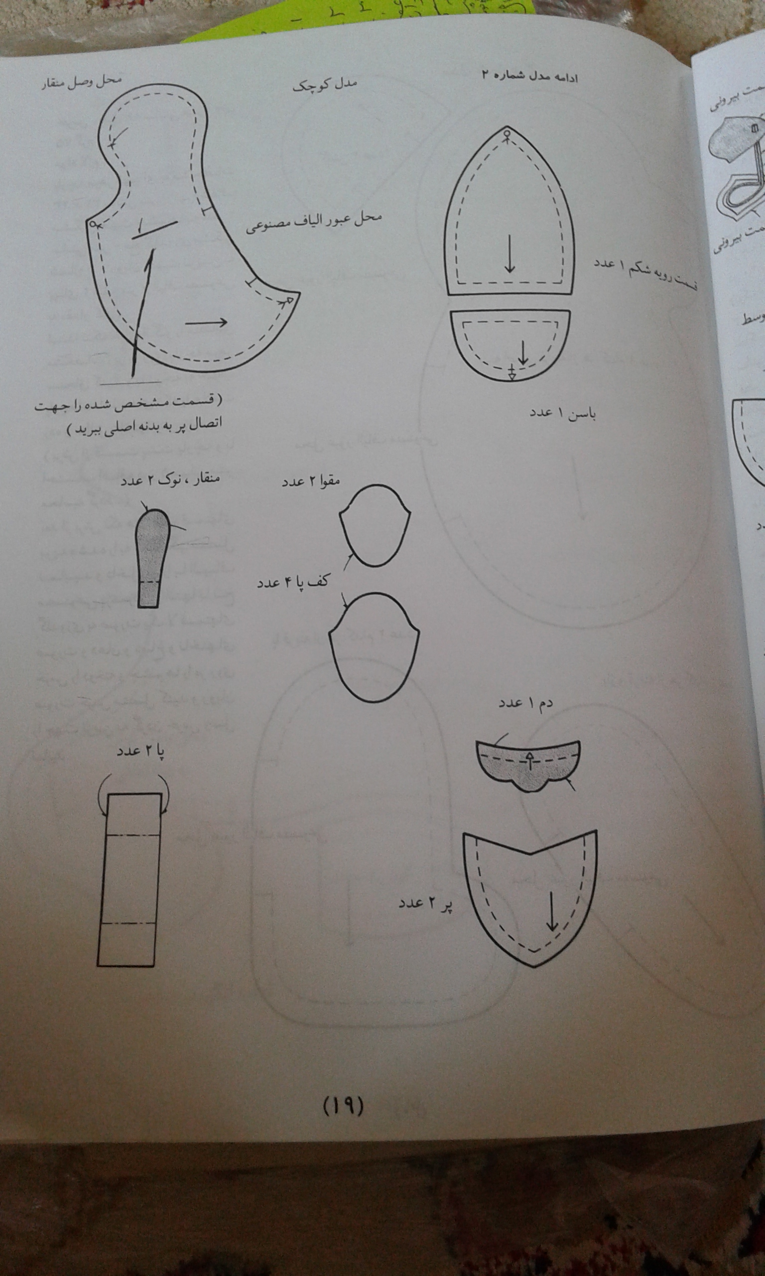 الگوهای موجود در کتاب را از ابتدا روی یک کاغذ معمولی کشیده، سپش آن را روی مقوا بچسبانید و الگوها را از روی مقوا ببرید.